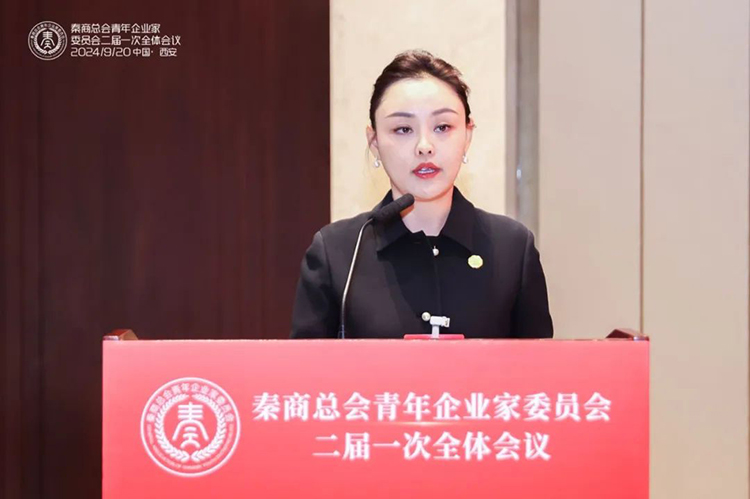 ▲ 秦商总会青年企业家委员会第一届常务副会长兼秘书长、荣华控股企业集团执行董事张程程宣读《秦商总会青年企业家委员会第一届工作报告(草案)》