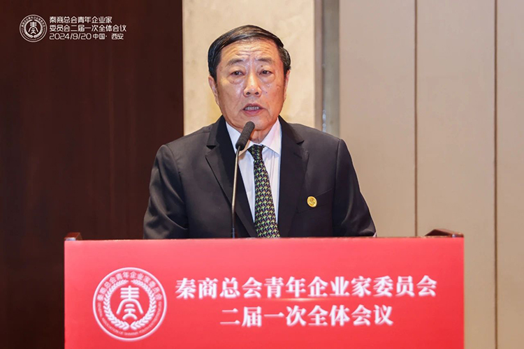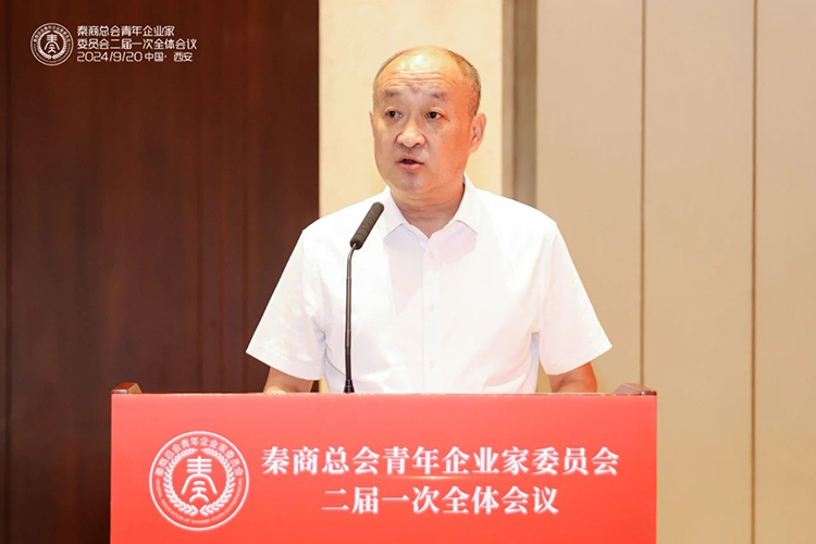 秦商总会党委书记刘阿津首先代表秦商总会和崔荣华会长对秦商总会青年企业家委员会换届大会的召开表示热烈的祝贺,对以丁晔会长为首的新一届领导班子的当选表示衷心的祝福,对第一届青委会的辛勤付出表示崇高的敬意。他说,秦商总会青年企业家委员会作为秦商总会的一个分支机构,承担着传承秦商精神、培育青年商业领袖的重任。在这个充满了机遇和挑战的时代,青年秦商作为秦商的新生力量,肩负着更加重大的历史使命。他说,秦商总会是总会青年会的坚强后盾,青年会也是总会的未来,青年秦商更是陕西发展的希望所在。希望大家坚持党建引领、政治领先,志存高远、胸怀天下,持续学习、提升自我,勇于创新、敢为人先,加强合作、互利共赢,坚守诚信、勇担责任。他也希望在以丁晔会长为首的二届领导班子的带领下,青年企业家委员会做出精彩、做出特色、做出亮点、做出广大青年会满意的业绩,共同为秦商的繁荣发展而努力,为实现中华民族的伟大复兴的中国梦贡献我们的青春与热情。