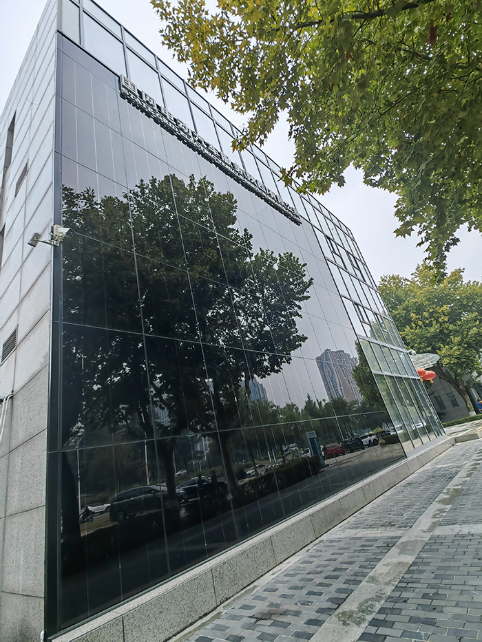 该项目位于陕西省西安市长安区,对国网电动汽车服务(陕西)有限公司办公楼南立面铝板部分拆除原铝板及玻璃幕墙,进行升级改造,安装碲化镉发电玻璃。项目安装面积约123.21m²,装机容量为15.12kW,采用尺寸1200*1600mm、最大额定功率280W的碲化镉发电玻璃组成,逆变器采用组串式逆变器,建成后年均发电量约为1.39万kWh。项目采用“自发自用,余电上网”的商业模式,并网方式采用集中并网,既能满足企业自身用电需求,又能将多余的电能并入电网,实现能源的最大化利用。